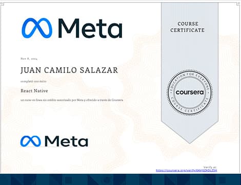 Desarrollo de Aplicaciones Moviles con React Native, para desarrollar aplicaciones moviles multiplataforma.